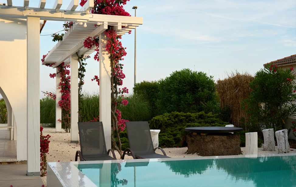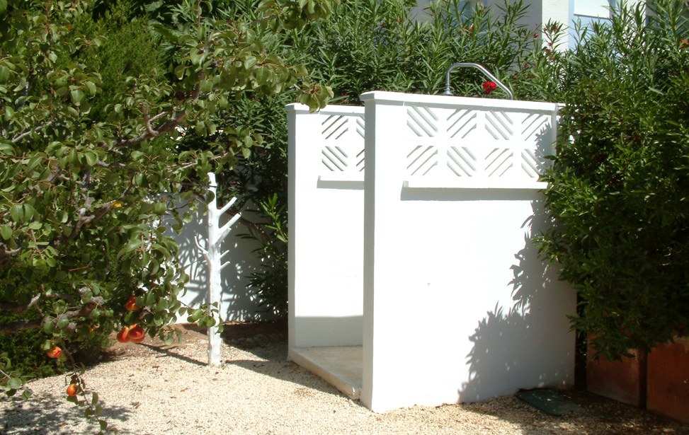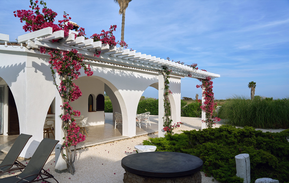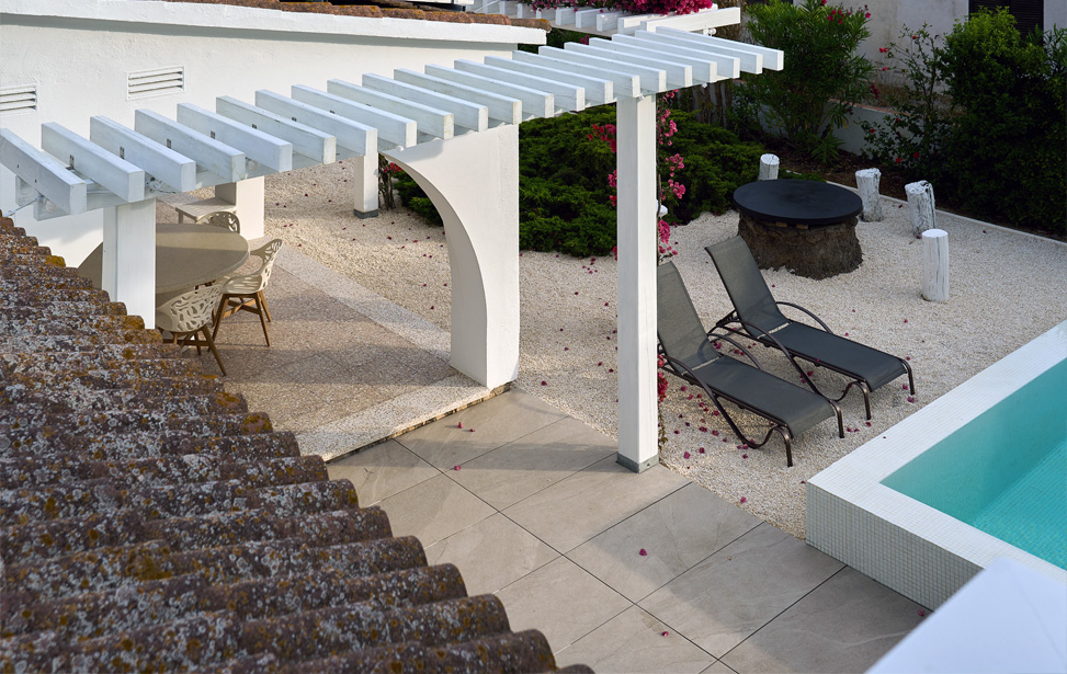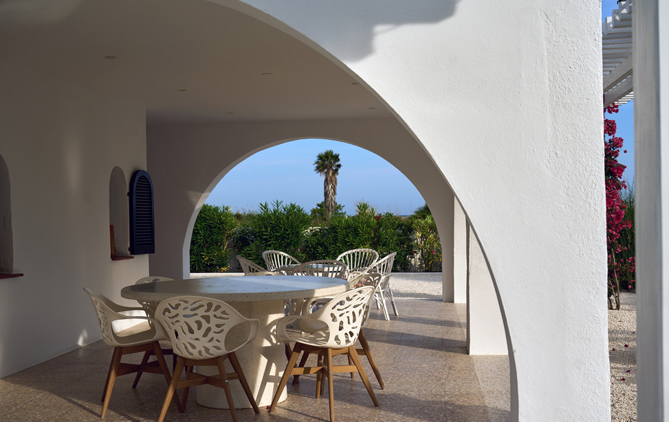 Casa Eucaliptus tiene todas sus dependencias en plata baja. Razón por la cual es una vivienda muy cómoda y accesible. Su arquitectura mediterránea con paredes blancas, porches y arcadas facilitan la vida al aire libre. Las actividades diarias se desarrollan indistintamente dentro y fuera conformando un espacio vital mucho más grande que el limitado por las cuatro paredes.